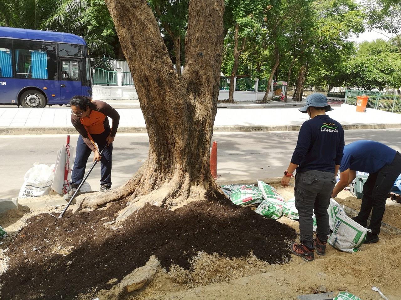 BIG Trees ร่วมกับสำนักงานเขตพระนคร ใช้ Air Spade พรวนดินและดูดดินเก่าออก แล้วเติมดินใหม่ผสมปุ๋ยและไบโอชาร์ลงไป จากนั้นปูด้วยอิฐพรุนเพื่อให้ระบายน้ำและอากาศได้ดี จนปัจจุบันต้นตะเคียนทองกลับมาแตกกิ่งและออกเมล็ดอีกครั้งในรอบหลายปี