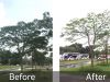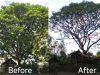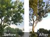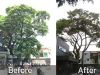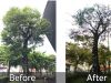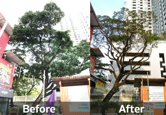 รุกขกร ตัดแต่งต้นจามจุรี ประดู่ โดยทำการเก็บตอ ตัดกิ่งแห้ง ตัดกิ่งที่ระอาคาร ตัดกิ่งเพื่อลดน้ำหนัก และวางโครงสร้าง ลดความสูง